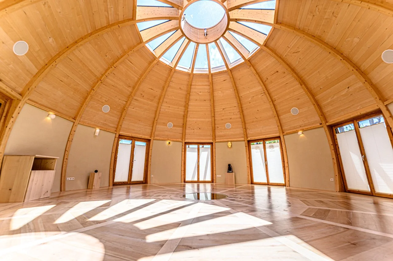 Lichtdurchflutete Sonnenkuppel am Schwimmteich